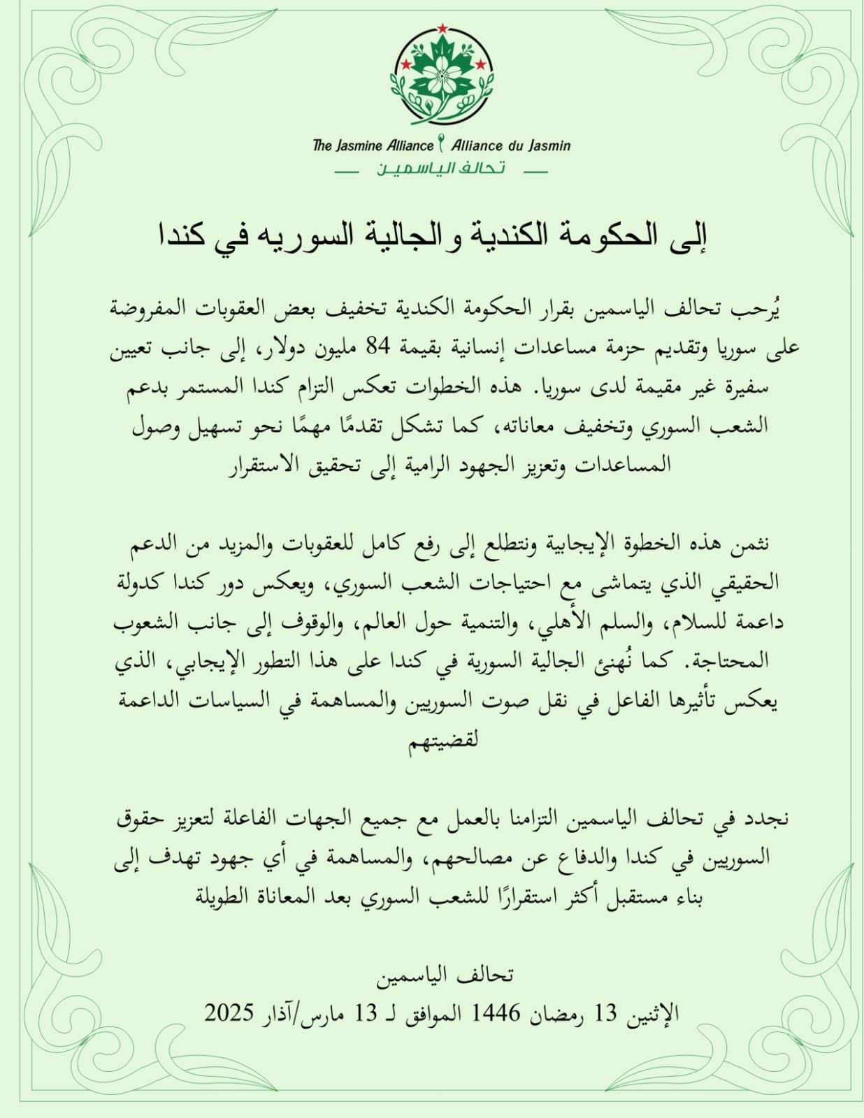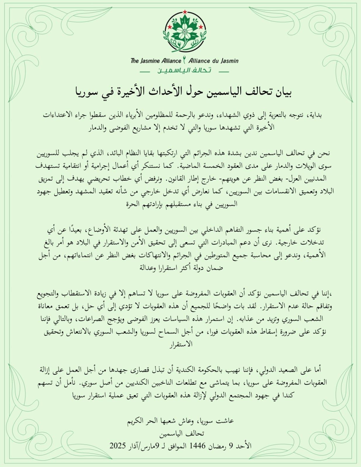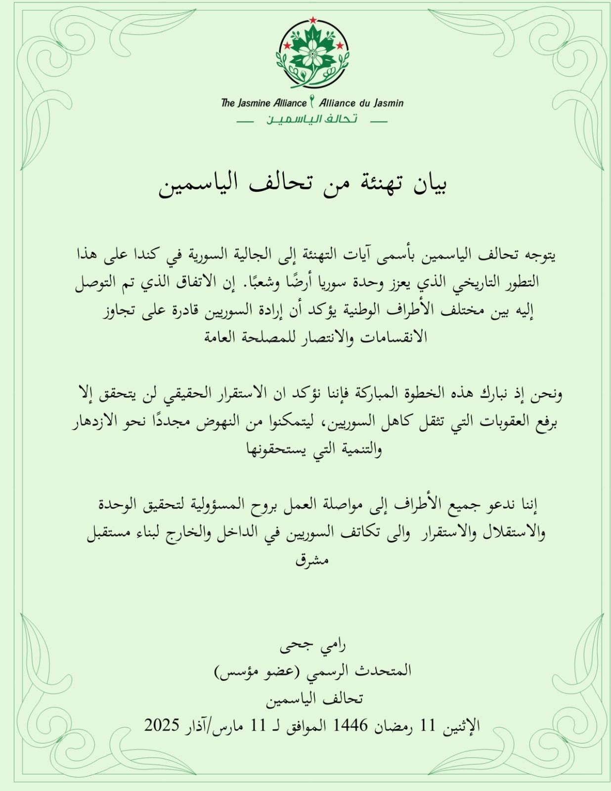 شكراً لتسجيل اشتراككم في تحالف الياسمين